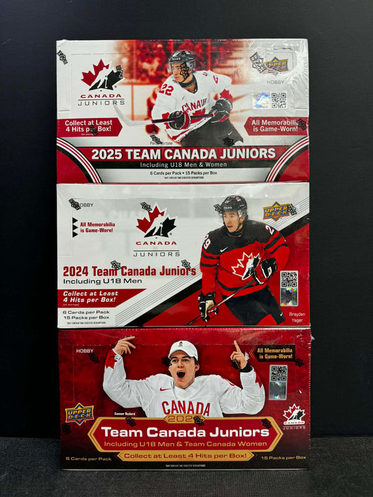 GB5085 TEAM CANADA JUNIORS TRIPLE BOX 2025/2024/2023 PACK RANDOM